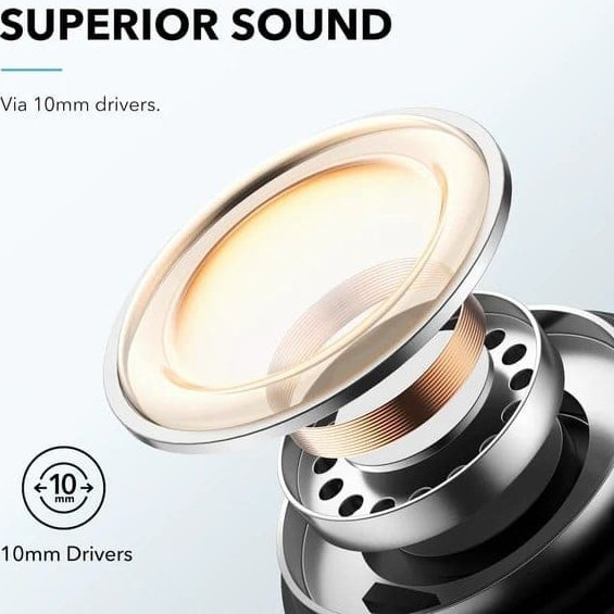 درایورهای 10 میلیمتری و فناوری BassUp™ انحصاری Soundcore، صدایی شفاف و قدرتمند با باسی عمیق و لرزان را ارائه میکنند که شما را به دنیای موسیقی میبرد.
