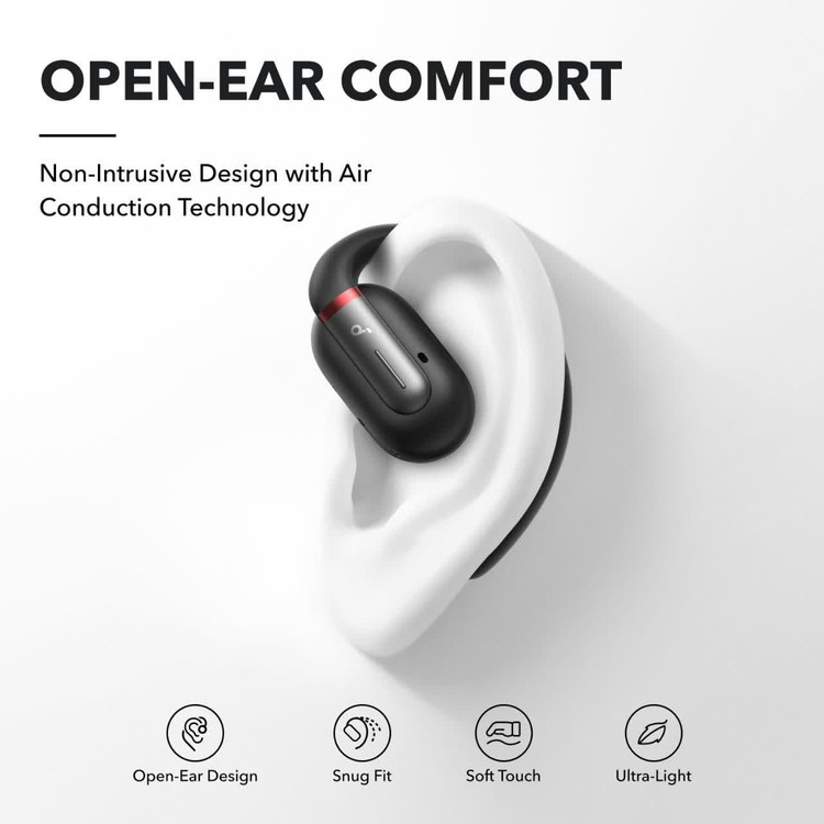 آگاهی بیشتر: از محیط اطراف خود، مانند اعلانهای حمل و نقل عمومی و ماشینهای روبرو، آگاه بمانید. به لطف طراحی باز هدفونهای روباز soundcore V30i، با دنیای اطراف خود در ارتباط باشید.
