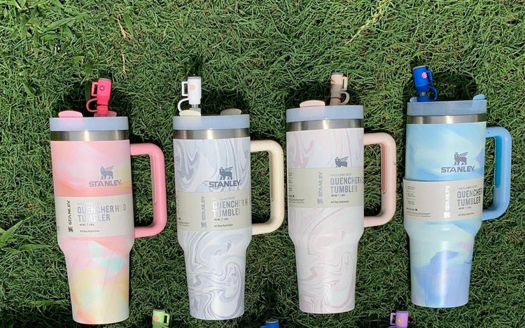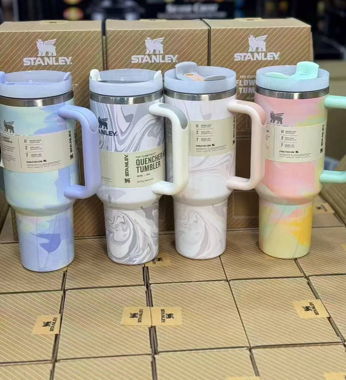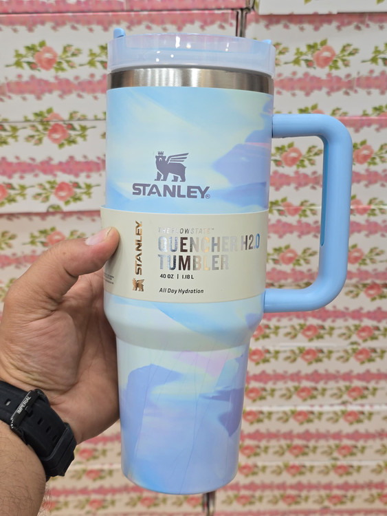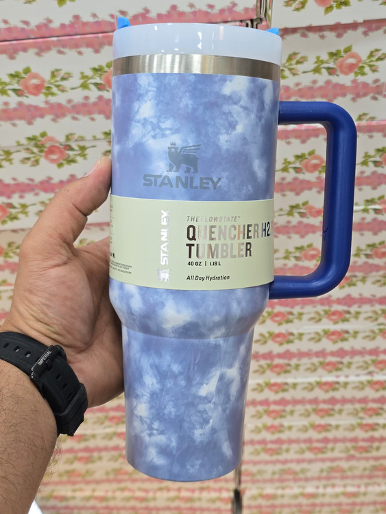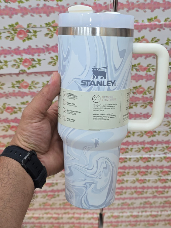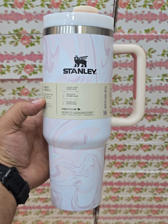 ماگ استنلی دسته دار(۱.۱۸ لیتر ) Quencher H2.O Tumbler طرح رگه دار به همراه اشانتیون (تصویر در اسلاید )