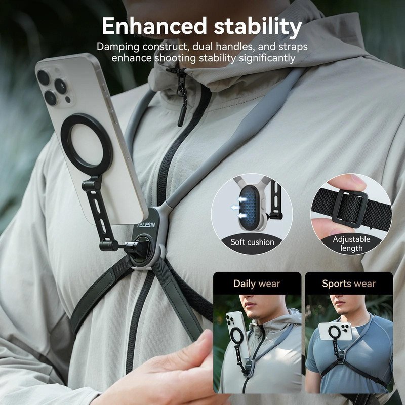 محصول دارای بندی هست که در قسمت سینه بسته میشود که موقعیت گوشی را تثبیت میکند