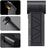 بدنهی این محصول از جنس ABS و فلز ساخته شده که مقاومت بالایی را در برابر ضربه و سایش تضمین میکند. باتری داخلی با ظرفیت 3000 میلی آمپر ساعتی، قابل شارژ و کارکرد طولانی مدت را فراهم میسازد و ولتاژ کاری بین 6 تا 8.4 ولت است که تعادل خوبی بین قدرت و مصرف انرژی ایجاد میکند. یکی از ویژگیهای برجسته این جت فن، موتور brushless آن است که به طول عمر و کارایی بالای دستگاه کمک میکند.